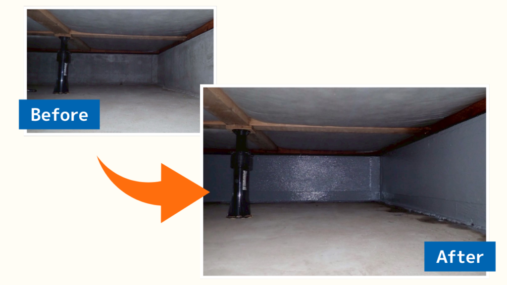 他社で床下の湿気対策や断熱材交換を提案されていたものの、基礎部分の中性化(劣化)が進行していました。同じ予算であれば「まずは家を支える土台部分から」という考えのもと、基礎全体の補強を実施しました。