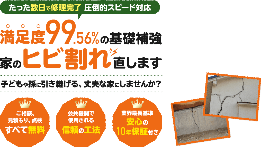 余計な修理費用が掛かる前に、家の土台である基礎の補強を、すみやかに行うことが必要です。