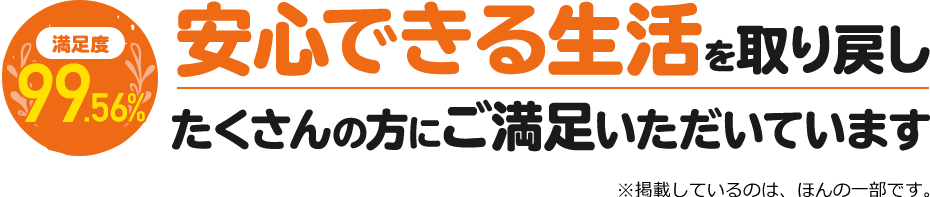 今まで修理をさせていただいたお客様に、満足度の集計をした結果、99.56%のお客様にご満足いただいています。嬉しいお声もたくさんいただきました。