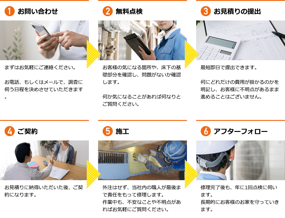 工事後にも責任を持ち、お客様の生活が安心できるものになるよう、精一杯対応させていただきます。